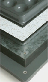 1.2mm厚度PVC貼面(1.0mm導(dǎo)電橡膠加0.2mm耐磨塑膠PVC面層)。